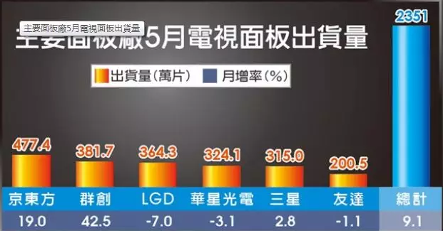 京東方5月刷新電視面板出貨量的紀錄 達477.4萬片